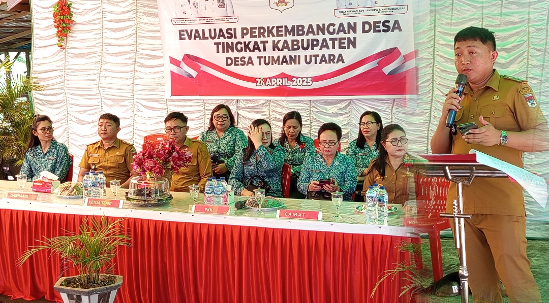 Minsel, suluthebat.id – Pemerintah Kabupaten Minahasa Selatan (Minsel) terus mendorong peningkatan kualitas desa lewat kegiatan Evaluasi Perkembangan Desa Tingkat Kabupaten di Desa Tumani Utara, Kecamatan Maesaan, Senin (28/04/2025).