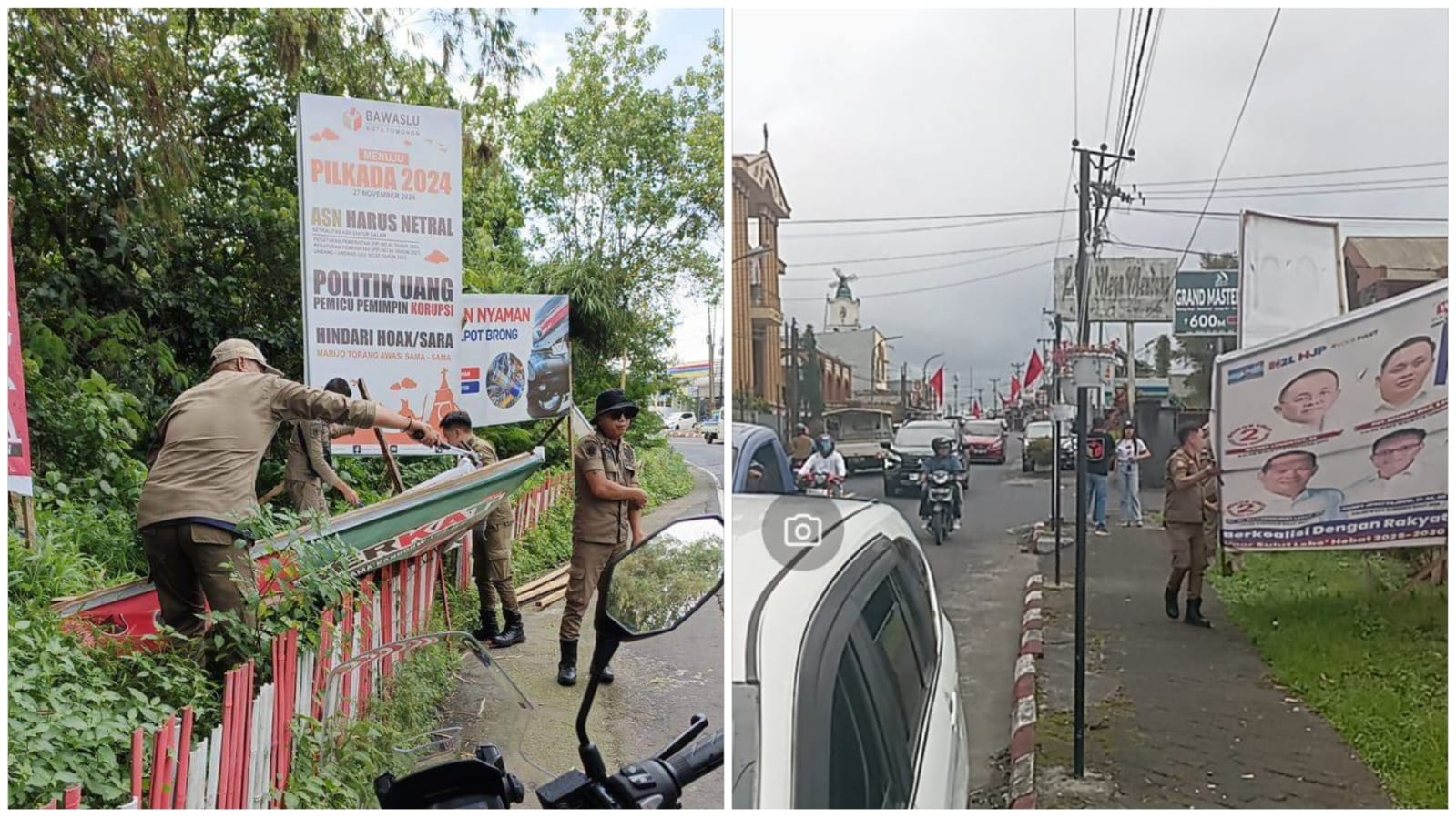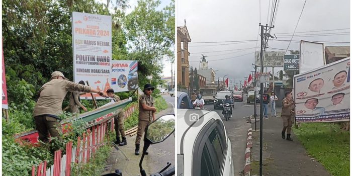 “Kami menertibkan baliho yang melanggar aturan, baik dari segi konten yang tidak sesuai ketentuan maupun penempatannya di lokasi-lokasi yang seharusnya steril dari APK. Kami menghimbau kepada seluruh pihak agar tidak mengulangi pelanggaran yang sama di kemudian hari,” tegas Kowaas.