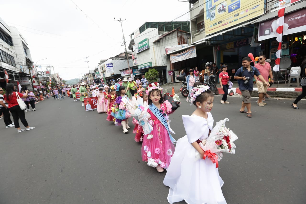 drg Jeand’arc Karundeng lepas pawai bocah dalam rangka memperingati HUT ke 79 Republik Indonesia.