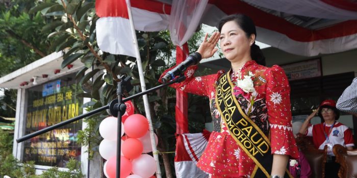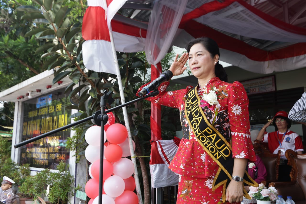 Tomohon, suluthebat.id – rBunda Paud Kota Tomohon drg Jeand’arc Senduk Karundeng selaku ketua TP PKK Kota Tomohon membuka sekaligus melepas secara resmi Pawai Bocah TK dan SD dalam rangka memperingati hari Kemerdekaan Republik Indonesia ke-79.