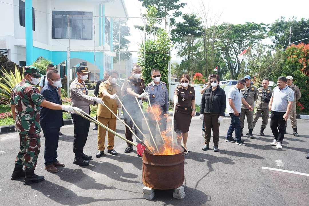 Di hadiri PJ Bupati Kumendong, Kejari Minahasa Melakukan Pemusnahan Barang Bukti Tindak Pidana Umum
