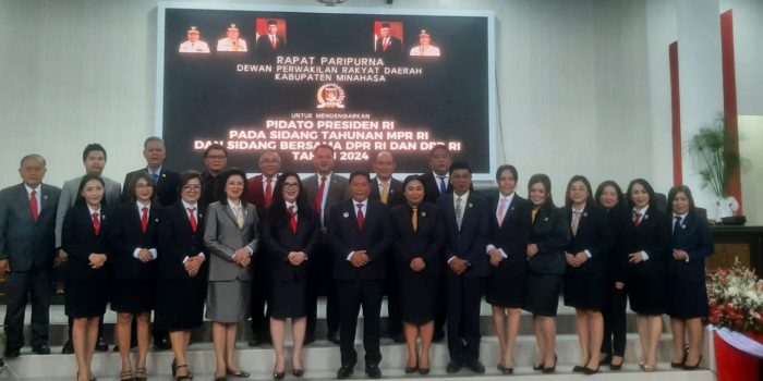 Sebelum bergabung secara live streaming secara nasional di gedung MPR/DPR. Rapat Paripurna DPRD di Minahasa ini dipimpin