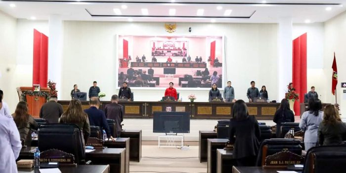Rapat paripurna ini dipimpin Ketua DPRD Glady Kandouw SE didampingi Wakil Ketua l Okstesi Prisilia Runtu, Wakil Ketua ll Denny Kalangi, dan Sekretaris Dra Rianny Suwarno MSi, serta dihadiri sejumlah Anggota Dewan.