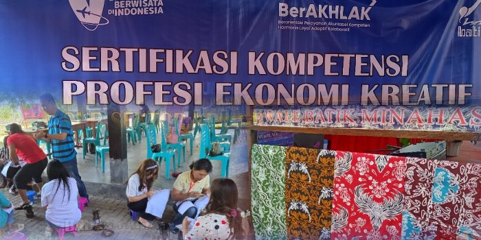 Minsel, suluthebat.id – Batik sebagai warisan kearifan dunia tak benda berasal dari Indonesia tentunya harus terus dikembangkan. Dan ini yang diupayakan oleh Wale Batik Minahasa, bekerja sama dengan Direktorat Standardisasi Kompetensi Deputi Bidang Sumberdaya dan Kelembagaan, Kementrian Pariwisata dan Ekonomi Kreatif, menggelar uji kompetensi Batik, 25-26 Juli 2024, yang digelar di desa Lopana, Minahasa Selatan.