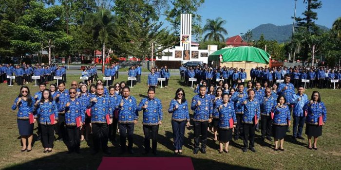 Tondano,Sulut Hebat id ,- Mengawali hari pertama Apel kerja setelah cuti bersama Idul Fitri 2024, Penjaba Bupati Jemmy Stani Kumendong pimpin Apel KORPRI Pemkab. Minahasa tahun 2024 Sekaligus Penyerahan SK Kenaikan Pangkat yang dilaksanakan di Lap Samratulangi, Taman God Bless Minahasa Rabu 17/04/2024