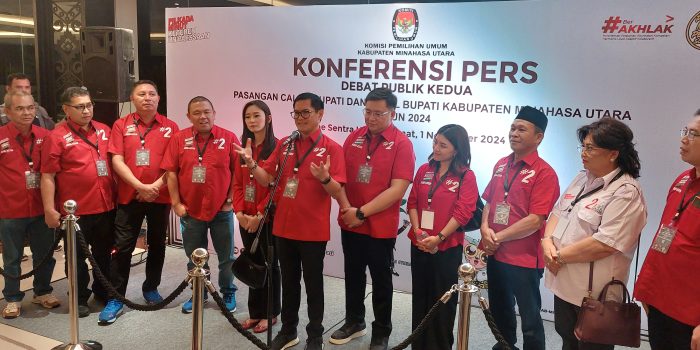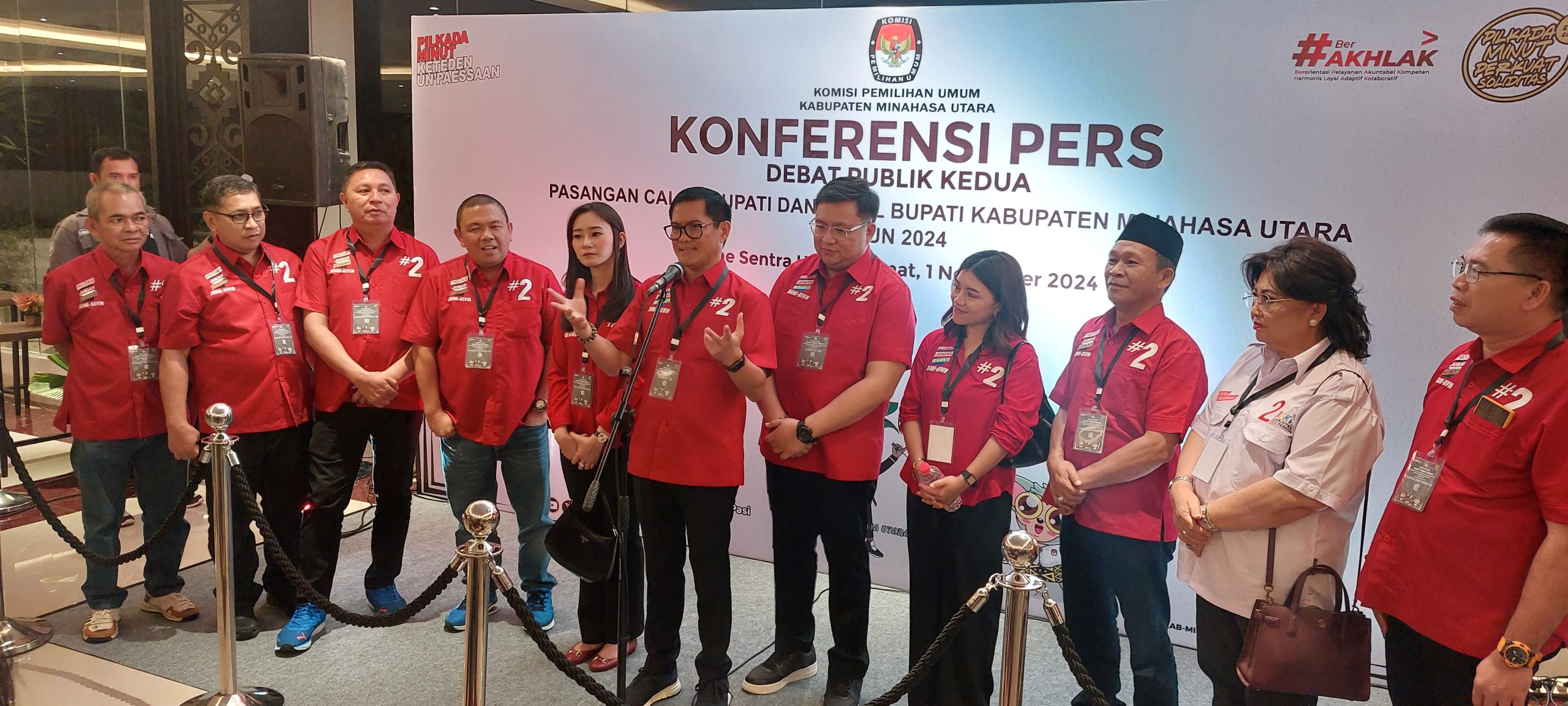Minut, suluthebat.id- Debat Publik Kedua yang digelar KPU Minahasa Utara (Minut), pasangan calon Bupati dan Wakil Bupati Minahasa Utara, Joune Ganda dan Kevin Lotulung (JGKWL), tampil memukau, di The Sentra Hotel, Maumbi. Jumat (1/11/2024).