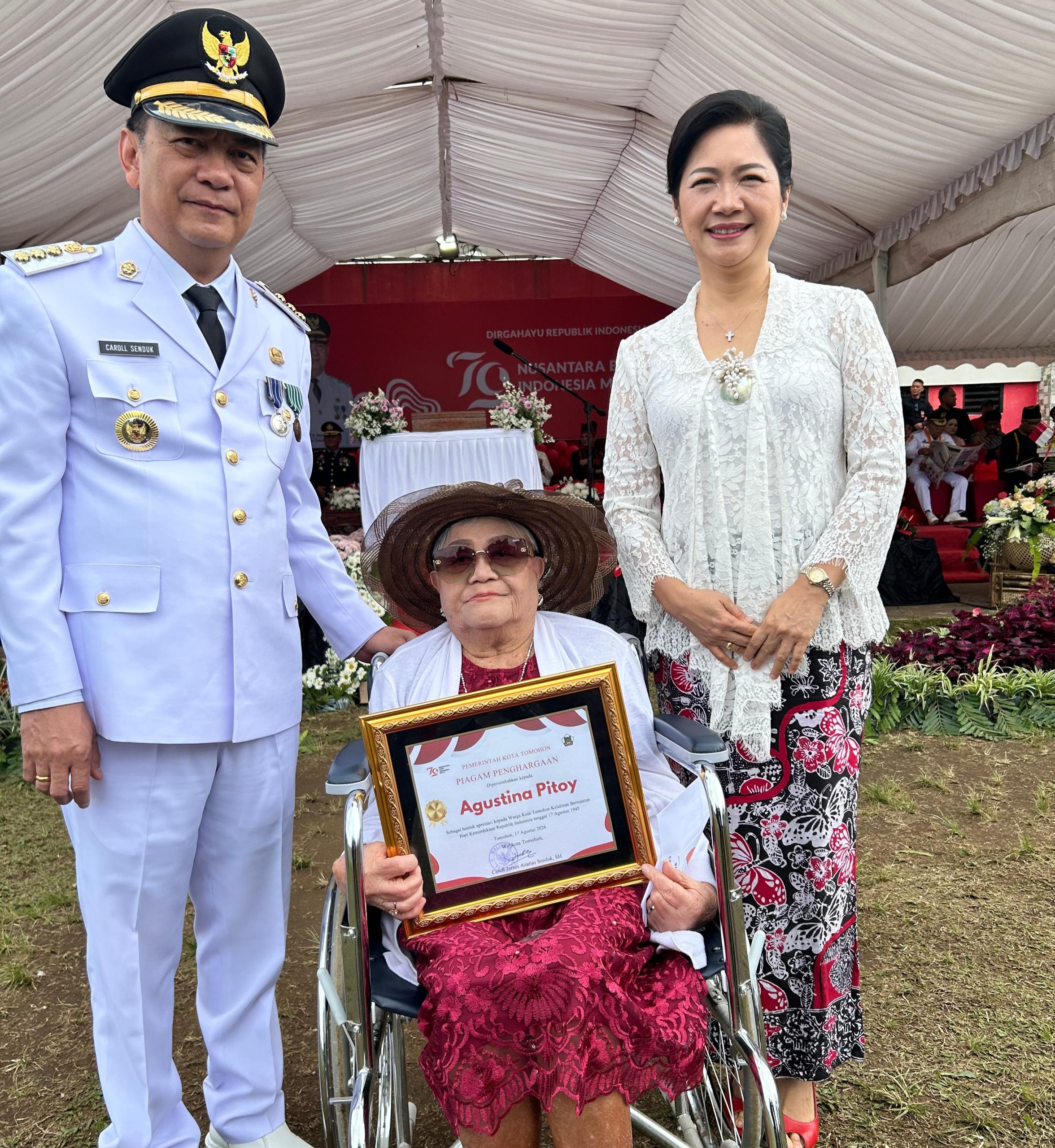 “Ini adalah momen yang sangat berharga dan penuh makna bagi kita semua. Oma Agustin Pitoy adalah simbol dari semangat dan perjuangan bangsa ini,” ujar Wali Kota Caroll Senduk.