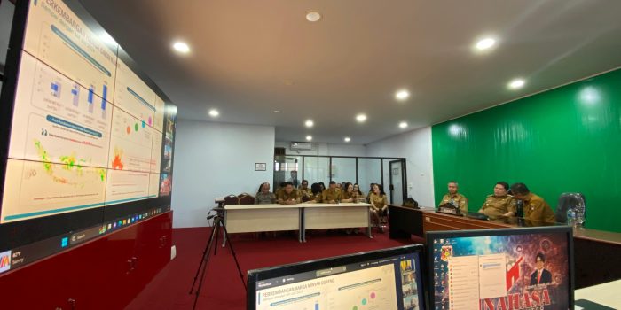 minahasa,suluthebat id – Bupati Minahasa Dr. Jemmy Stani Kumendong M,Si, di dampingi oleh Sekretaris Daerah Dr. Lynda D. Watania MM, M,Si, Mengikuti rakor pengendalian inflasi melalui via zoom meeting,di  ruang comand center ,senin 29/07/2024,