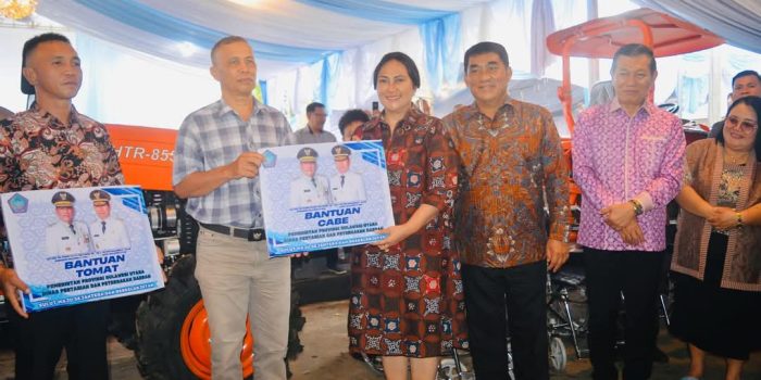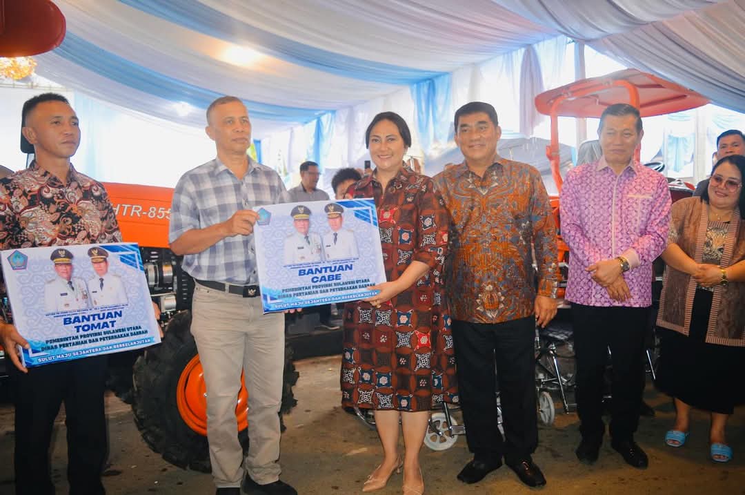 Gubernur Sulut bersama Ketua TP-PKK Sulut, Ny. Anik Yulius Selvanus, serta Wakil Gubernur Victor Mailangkay hadir langsung menyerahkan berbagai bantuan strategis, mulai dari alat-alat pertanian dan perikanan seperti traktor, kompresor, oven, freezer, hingga pompa air. Selain itu, diberikan pula benih unggul seperti jagung, tomat, dan cabai untuk mendukung produktivitas petani.
