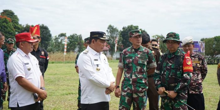 minahasa – Suluthebat id – Penjabat Bupati Jemmy Stani Kumendong Menjadi Inspektur Dalam Upacara Pembukaan TNI Manunggal Membangun Desa (TMMD) Ke-121 Tahun 2024, di Lapangan Kinakas, Desa Pahaleten, Kecamatan Kakas. Rabu. 24 /07/ 2024