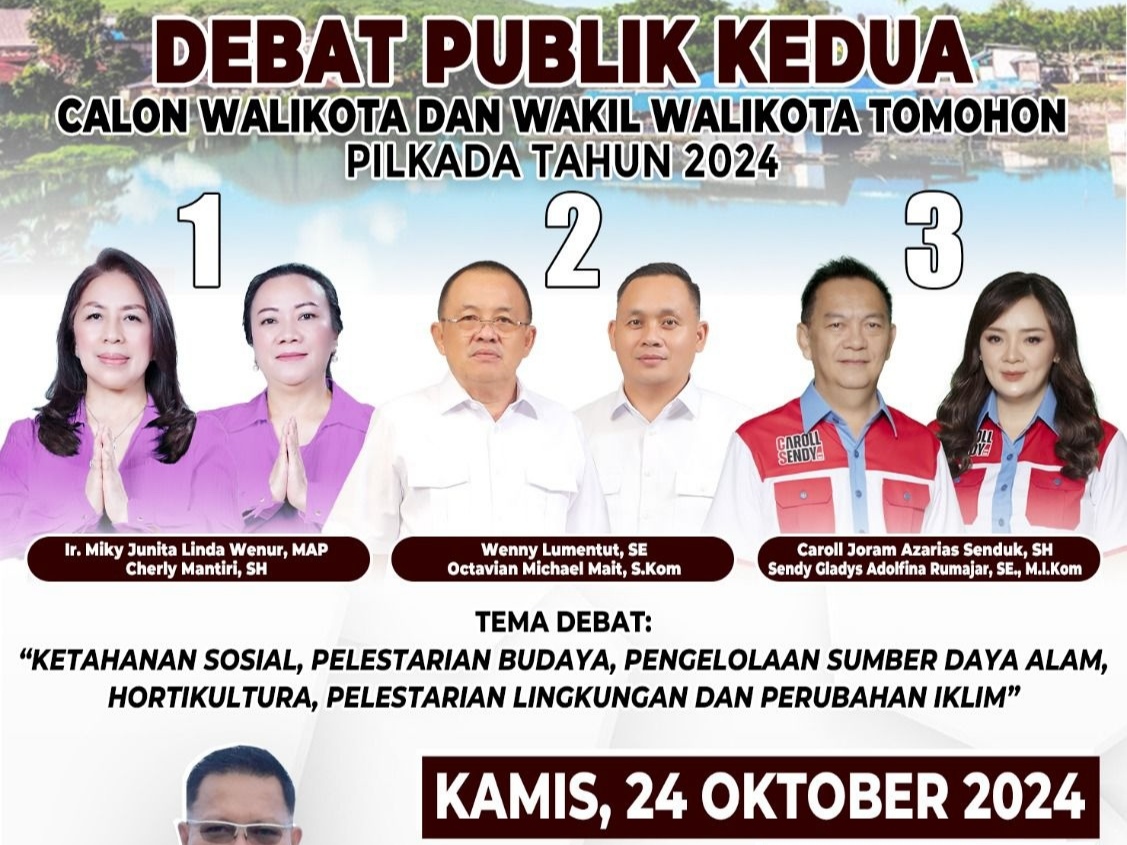 Saksikan Debat Terbuka Kedua Paslon Walikota dan Wakil Walikota Tomohon, Kamis 24 Oktober
