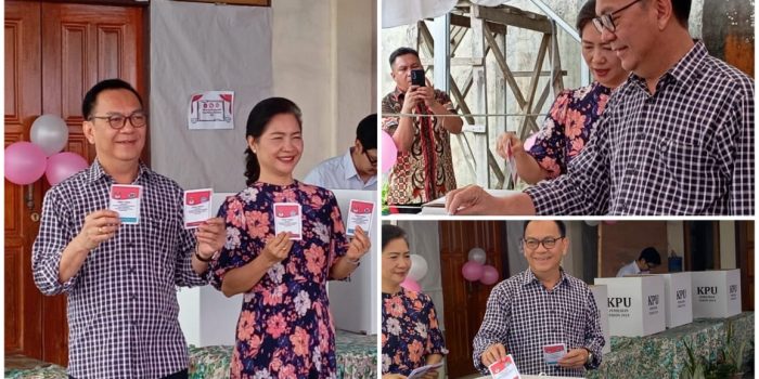 Tomohon, suluthebat.id – Wali Kota Tomohon Caroll Joram Azarias Senduk SH menyalurkan hak pilihnya di TPS 006 Kelurahan Kakaskasen Dua, Kecamatan Tomohon Utara.