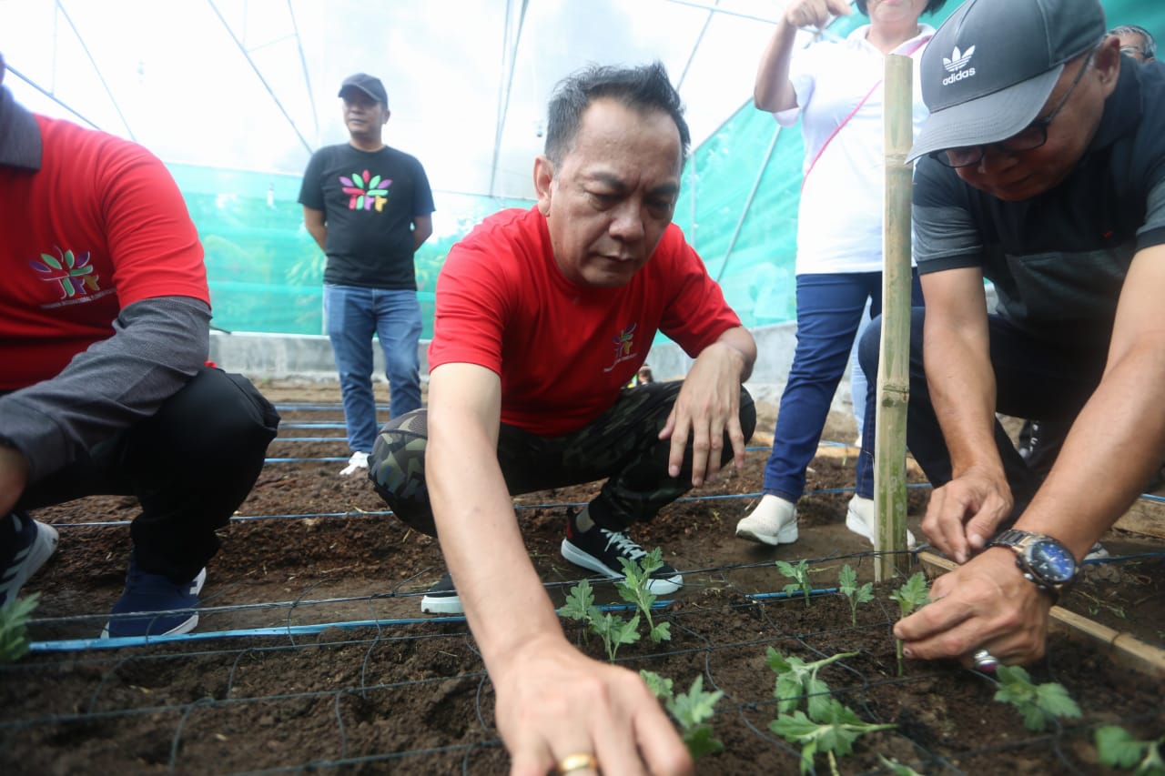 Menyadari itu, Walikota Tomohon Caroll J A Senduk bersama Fokopimda Tomohon dan Kelompok Tani Asosiasi Bunga Indonesia Kota Tomohon menggelar kegiatan penanaman bibit bunga krisan.