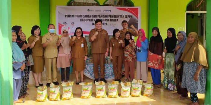 Minut, suluthebat.id- Pemerintah Kabupaten Minahasa Utara melalui Dinas Ketahanan Pangan, menyalurkan Cadangan Pangan Pemerintah kepada masyarakat terdampak banjir tahun 2024, di desa Likupang Satu, Sarawet, dan Kampung Ambong, kecamatan Likupang Timur. Selasa (16/7/2024).