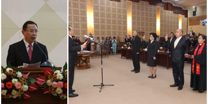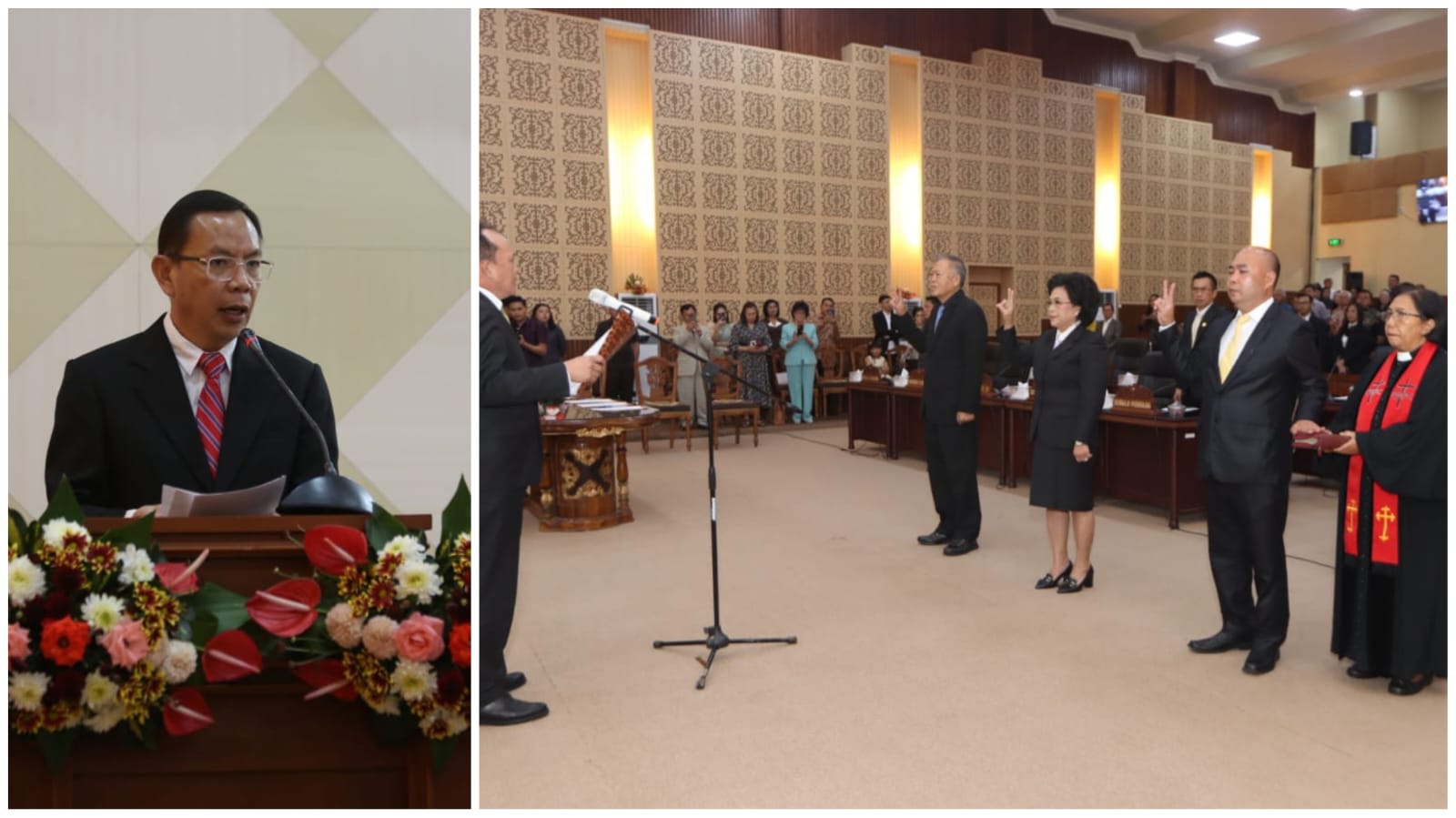 Tomohon, suluthebat.id – Rapat Paripurna DPRD Kota Tomohon dalam rangka Peresmian, Pelantikan dan Pengucapan Sumpah / Janji Pengganti antar Waktu Anggota DPRD sisa masa jabatan 2019 – 2024 dipimpin langsung oleh Ketua DPRD Kota Tomohon Djemmy Sundah SE didampingi oleh Wakil DPRD Kota Tomohon Drs Johny Runtuwene bersama Erens Kereh AMKL.