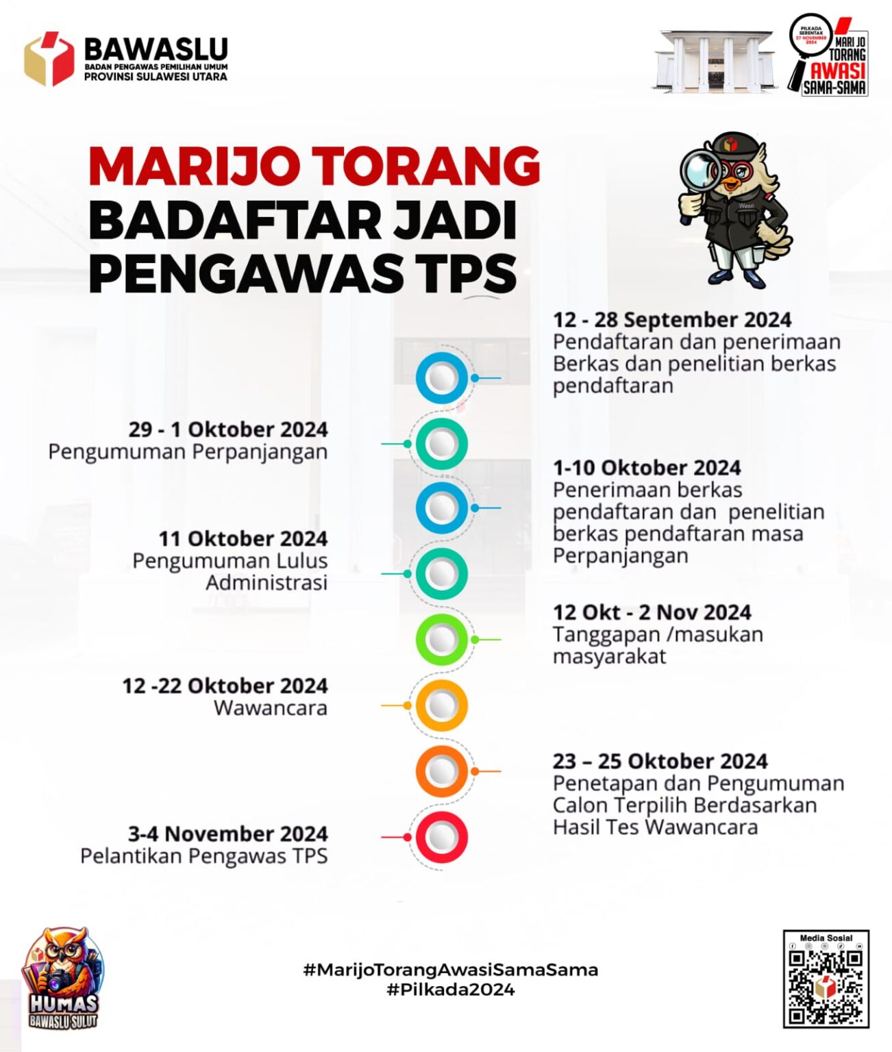 Manado, Suluthebat.id – Badan Pengawas Pemilu (Bawaslu) Provinsi Sulawesi Utara (Sulut) mengumumkan pendaftaran bagi masyarakat yang ingin menjadi Pengawas Tempat Pemungutan Suara (TPS).